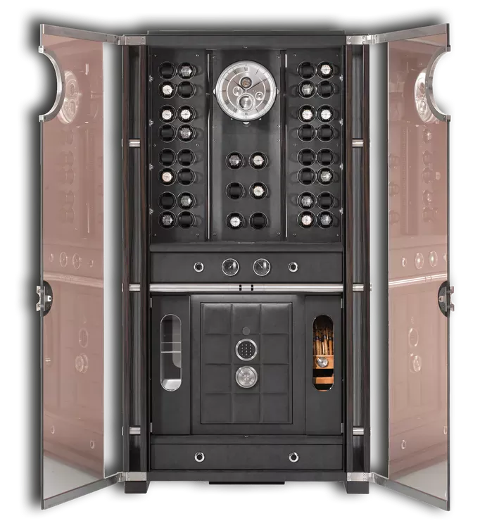 Поражает разнообразие функций, скрывающихся за кристально-прозрачным стеклом шедевра и доступных только тем, кто имеет право доступа: каждый раз завораживает превращение зеркальной поверхности в прочную стеклянную дверцу, открывающуюся секретным способом. Сочетание самых современных технологий и дизайна превращает VISION в роскошное украшение любого интерьера.