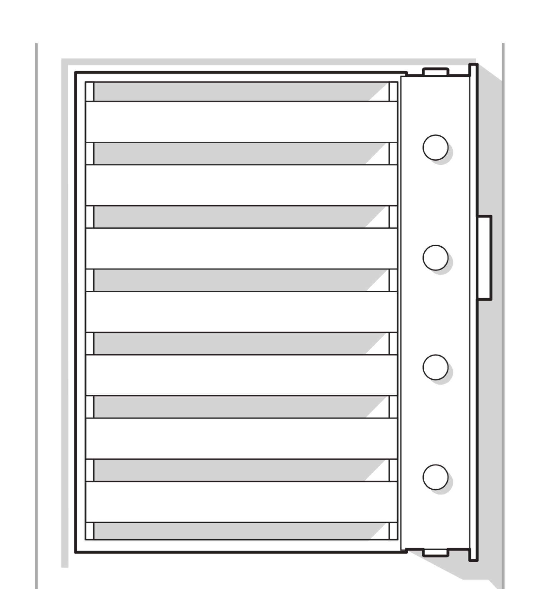 - Система запирания с резервированием, с 7-значным кодовым замком и аварийным ключом