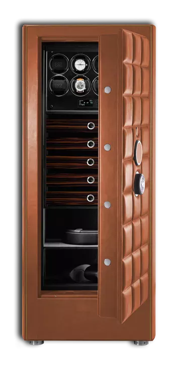 Приятно скользить пальцами по поверхности тонкой кожи, ощущая высокое качество выделки этого натурального материала, и при этом осознавать, что под элегантной отделкой скрывается прочный каркас сейфа, надежно оберегающий доверенные ему ценные сокровища — с использованием новейших технологий безопасности, разработанных немецкими инженерами.